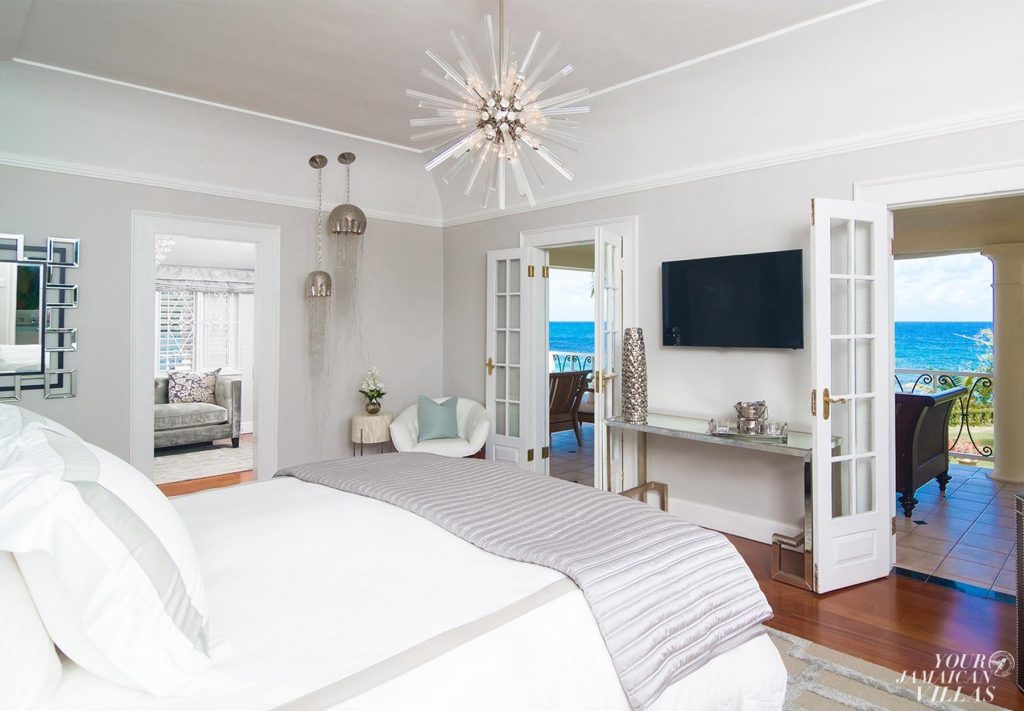 King 4 poster bed, AC, en suite bathroom with oversized soaking tub and walk-in steam shower, his and hers vanity, water-jet marble mosaic floor, all marble wall tile and counters, private WC, separate dressing room with wardrobes, flat screen TV, private patio with ocean view
